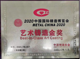 六、赵敏写真铜艺《根语》系列作品之《根基》,以其多项工艺创新的特点在2020年第十八届中国国际铸造博览会上荣获艺术铸品金奖。