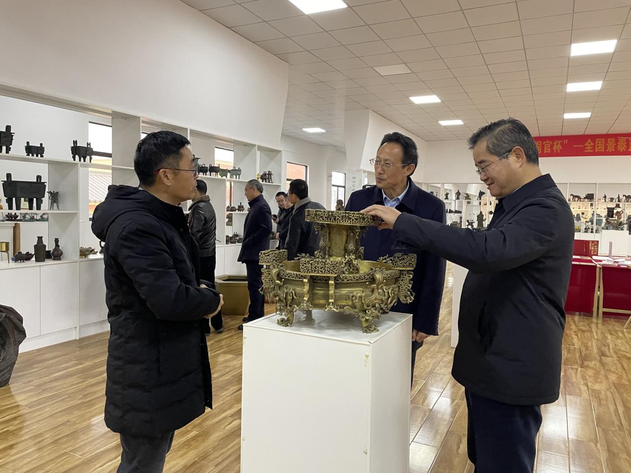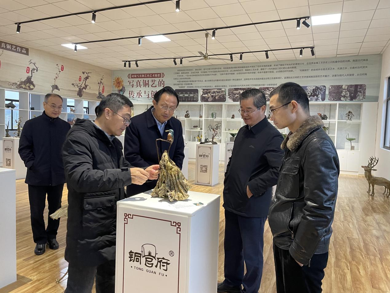 12月12日,黄冈市人大常委会党组副书记、副主任詹旺民率队来我公司考察,市人大常委会党组副书记、副主任汪宜武陪同。公司负责人郭飞向大家详细介绍了公司文旅融合发展、铜文化资源挖掘、铜文化建设等工作情况。詹旺民副主任充分肯定了铜官府在壮大铜文化产业方面所做的工作和取得的成效,并希望进一步加强两地文化的互动交流、互学互鉴,共同促进经济社会发展。